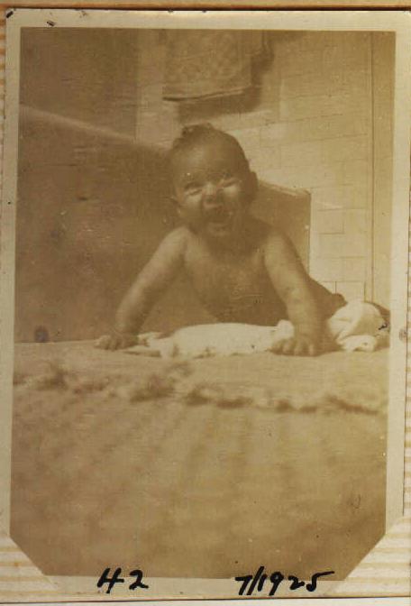 At center, 8 month old Carol with Grandmother Hilda. At bottom left, Carol with mother Florence, and at bottom right, with PCH.