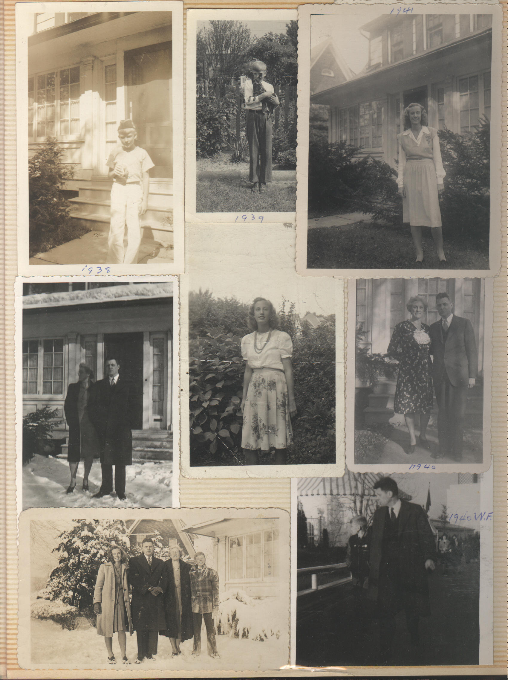 At upper center is Bob holding our greyhound pup (1939) At upper right is Carol in front of the house in Whitestone (1941).