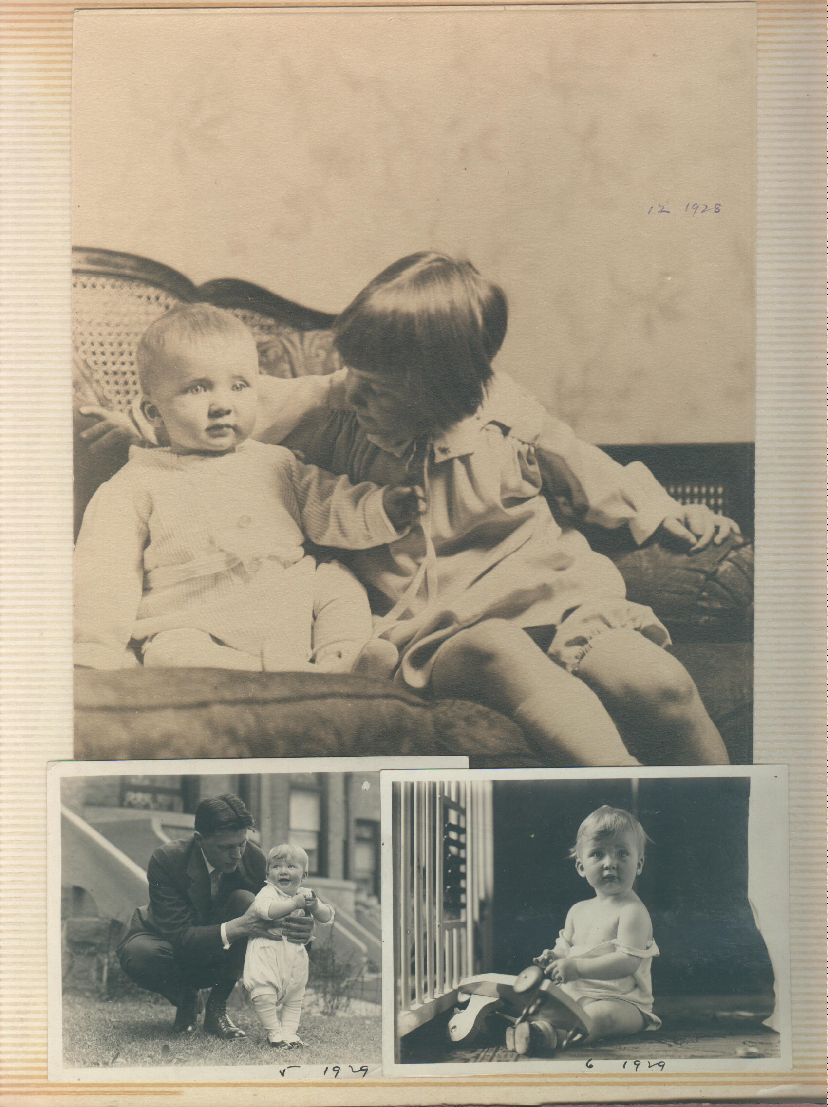 At lower left PCH with Bob on tiny lawn in front of Brooklyn house, 5/1929.