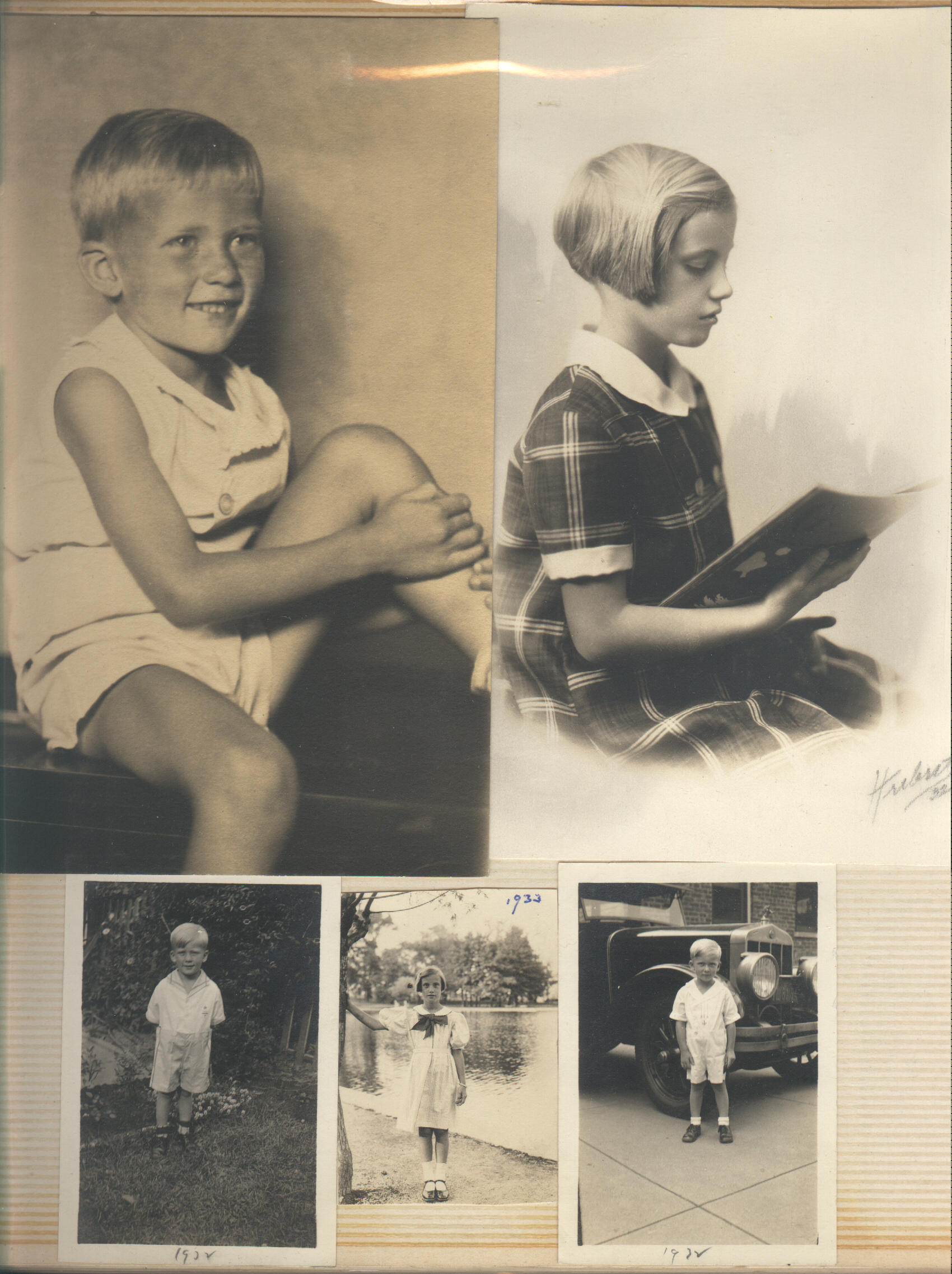Lower left, Bob 1932. Lower center, Carol at Kissena Park, 1933. Lower right: Bob in front of the old Franklin, 1932.