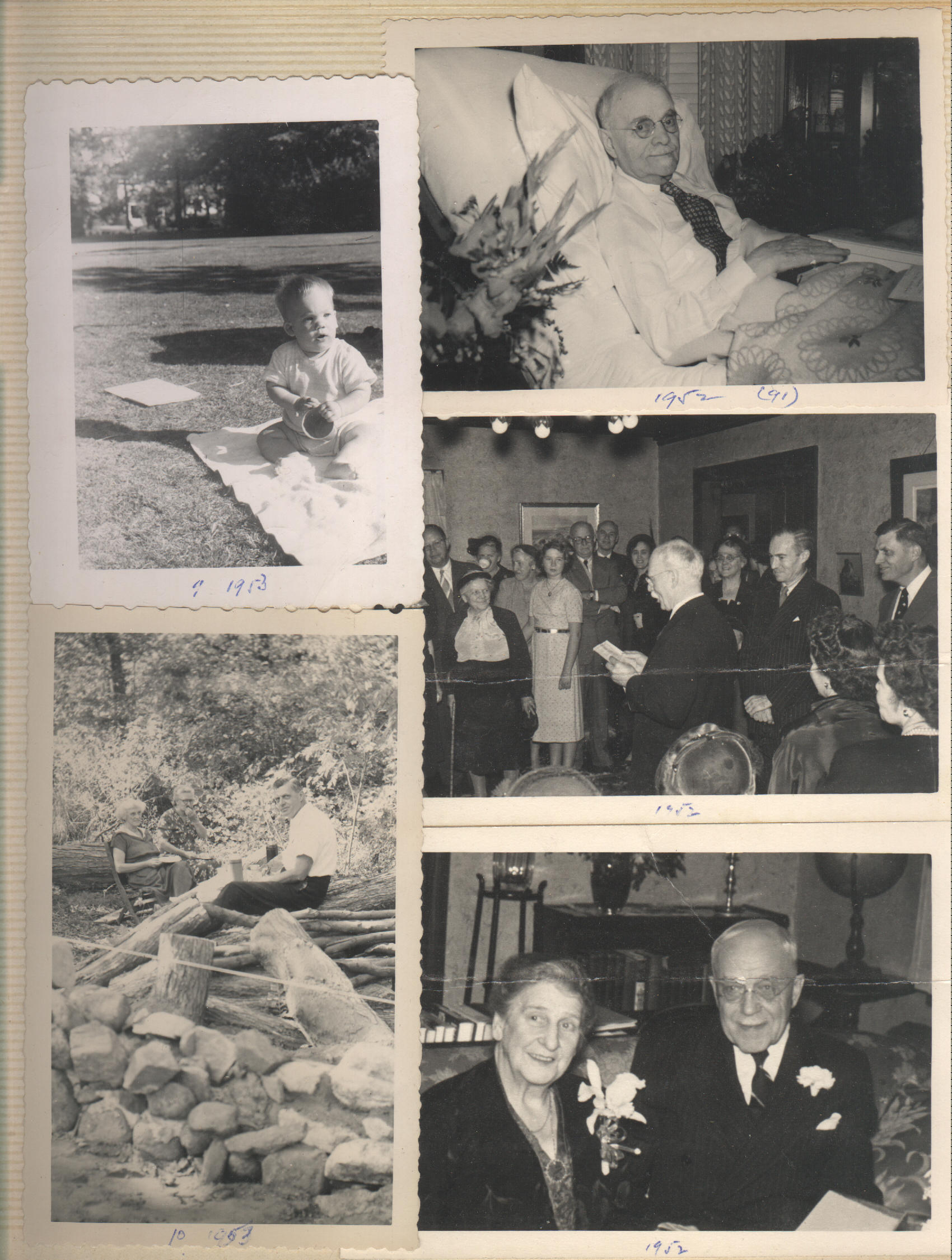 Center and lower left: I believe the two photos are of the ?? room. Perhaps a wedding anniversary celebration for the couple in the lower picture. I can recognize only PCH at the far right of the center picture. The date is 1952.