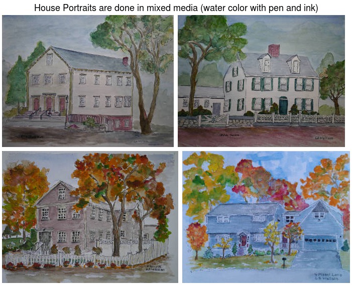 Please see below for work I have done. Some are for sale and some are samples, as in house and pet portraits.