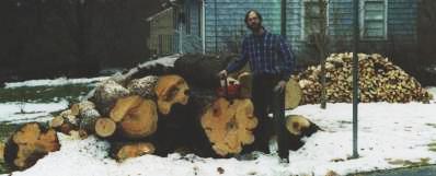 What I do now is just buy log-length wood from a local tree service; they get paid to cut them down and then I pay them to deliver them to me. True, it does increase carbon dioxide and possibly global warming but these guys would eventually rot and accomplish the same thing, just in a few more years. I don't use much oil, so we gain there. I keep about six cords in my yard, or two years worth. We need to age them for a year or so before we burn them, hence the two-year supply.