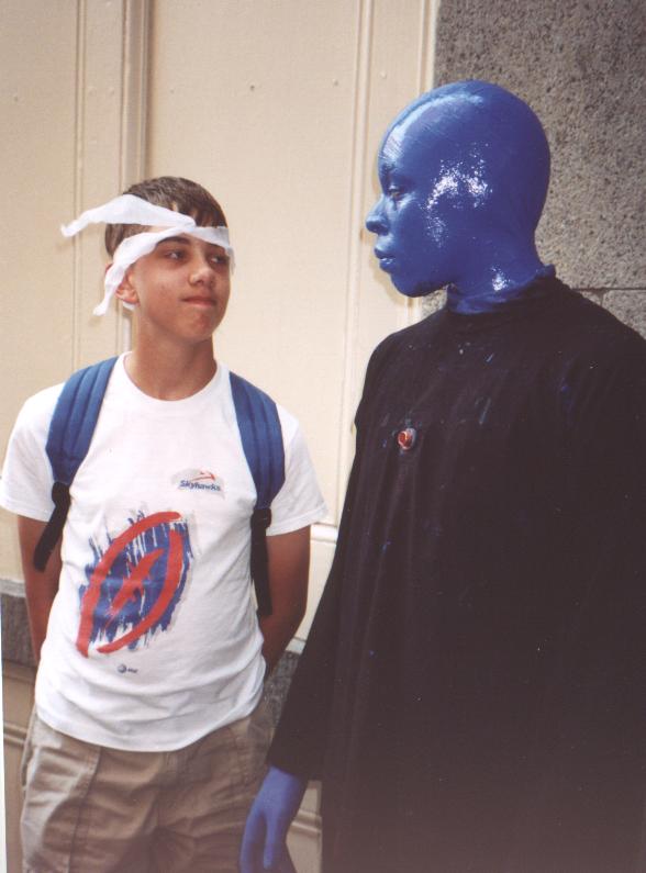 a Blue Man after the performance.