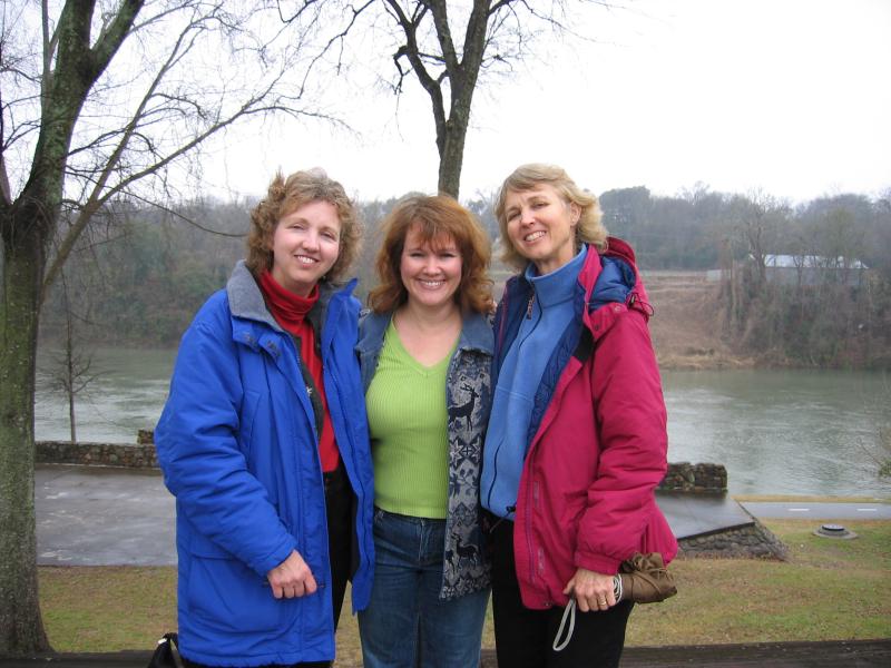 Laura went south in the winter to visit her dad in Florida and her sister Sally in Georgia as she often does. This time she went with her other sister Beth from Bridgewater, MA. At right the three of them are in Georgia on a picturesque riverwalk. Left to right are Laura, Sally, and Beth.