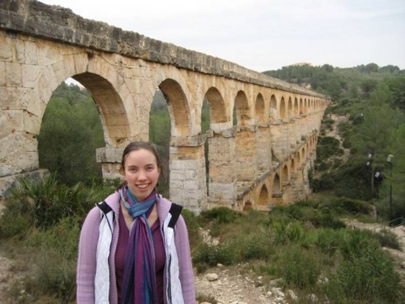 As the dollar has fallen to record lows in currency markets, I've been able to tell everyone that my daughter is paid in euros! She has had a chance to learn some Catalan (she already knows Spanish) as well as do some traveling around Spain. In the picture she's in front of a Roman aqueduct not too far from Barcelona. Katherine expects to be looking for a job back in the US in the summer. (Her degree is in human rights studies with minors in Spanish and linguistics, in case you will be looking for someone like that this summer!)