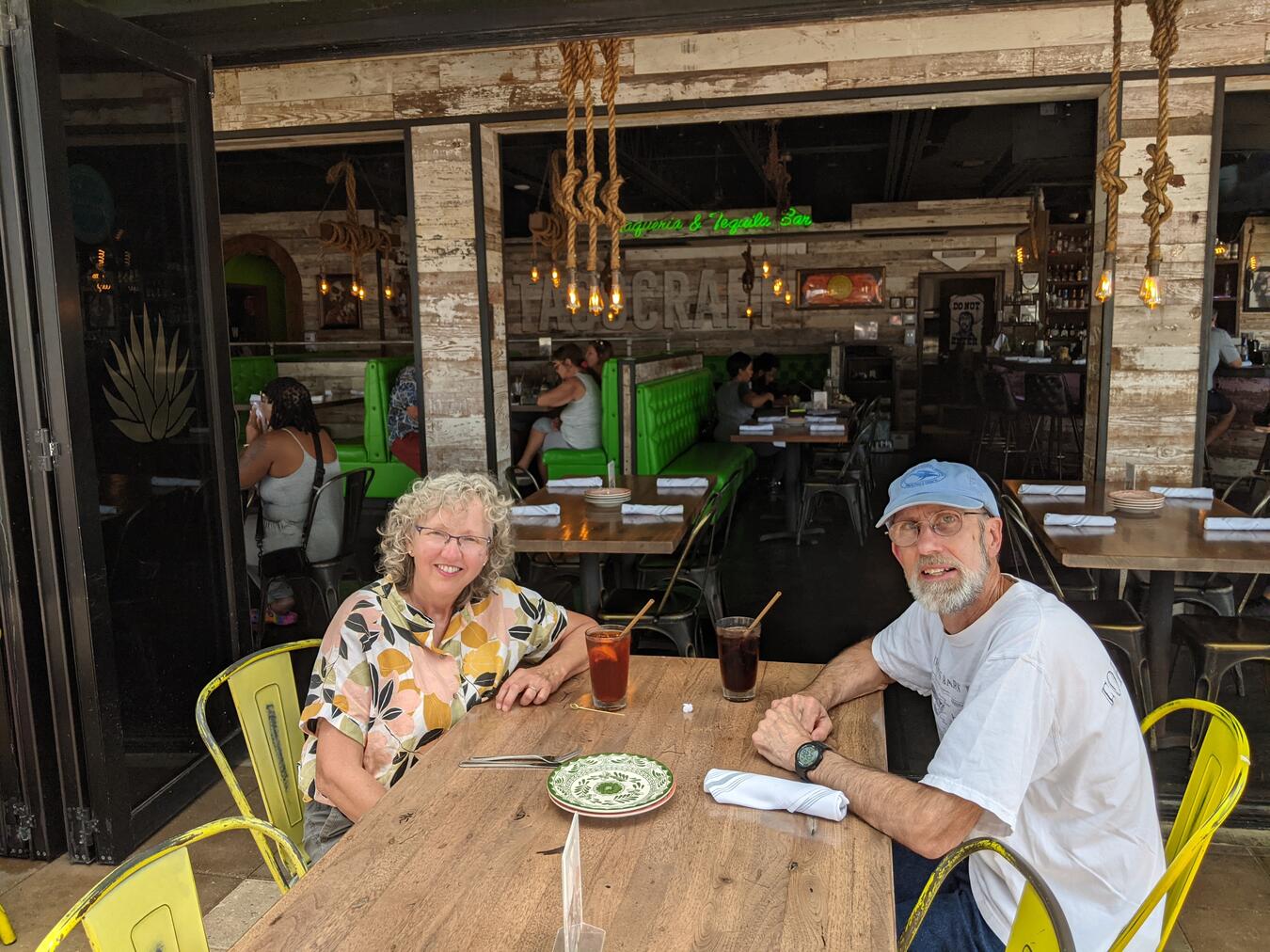 In October we went back to Florida to celebrate our anniversary; that was our first time flying since February 2020. I brought my CO2 detector, and found good ventilation in the airport, and on the plane once we cranked up our air nozzles to the max. We were happy to see that the place we stayed then was still in business, and stayed there again. We ate breakfast in our room, and all other meals outdoors. We felt pretty safe, but at one meal a heavy rain blew sideways enough to get me a little wet, and at another a total monsoon swept in when we were 90% done with dinner. We ended up standing under some marginally effective umbrellas and finishing things up! But all in all Florida in October is a pretty decent place to eat outside, if you can stay out of the sun during lunch.