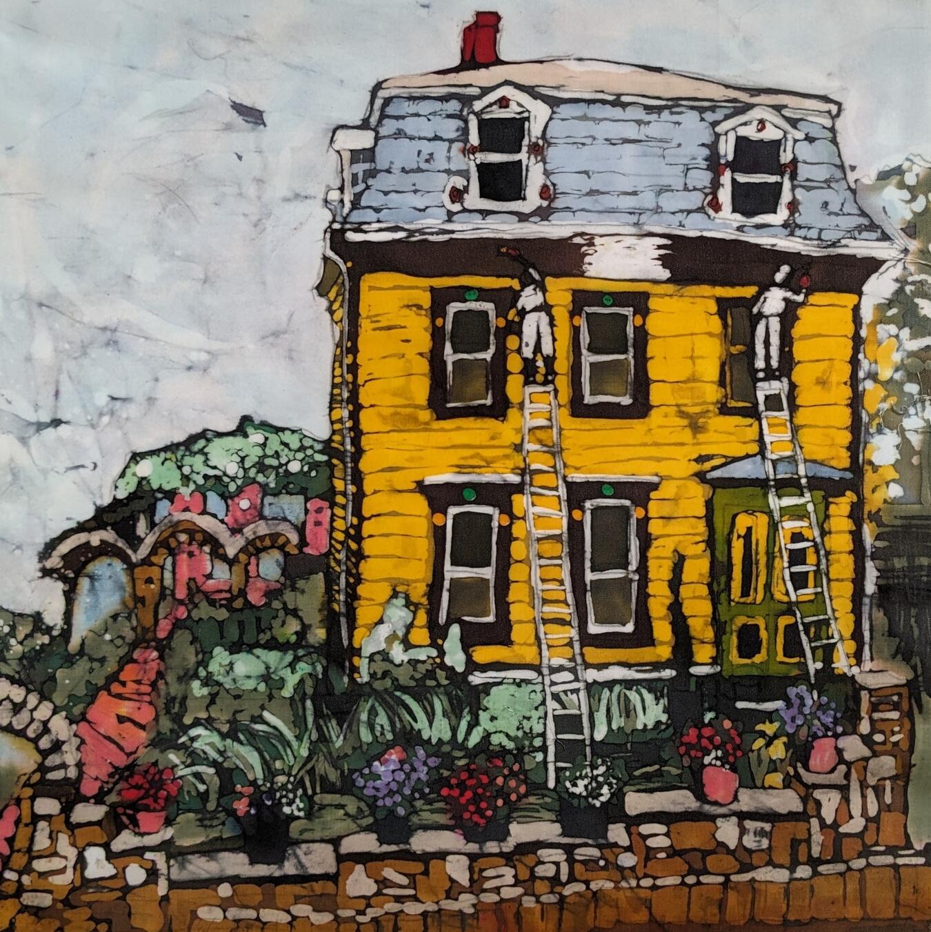 and made a batik of some workers and a rather bright house