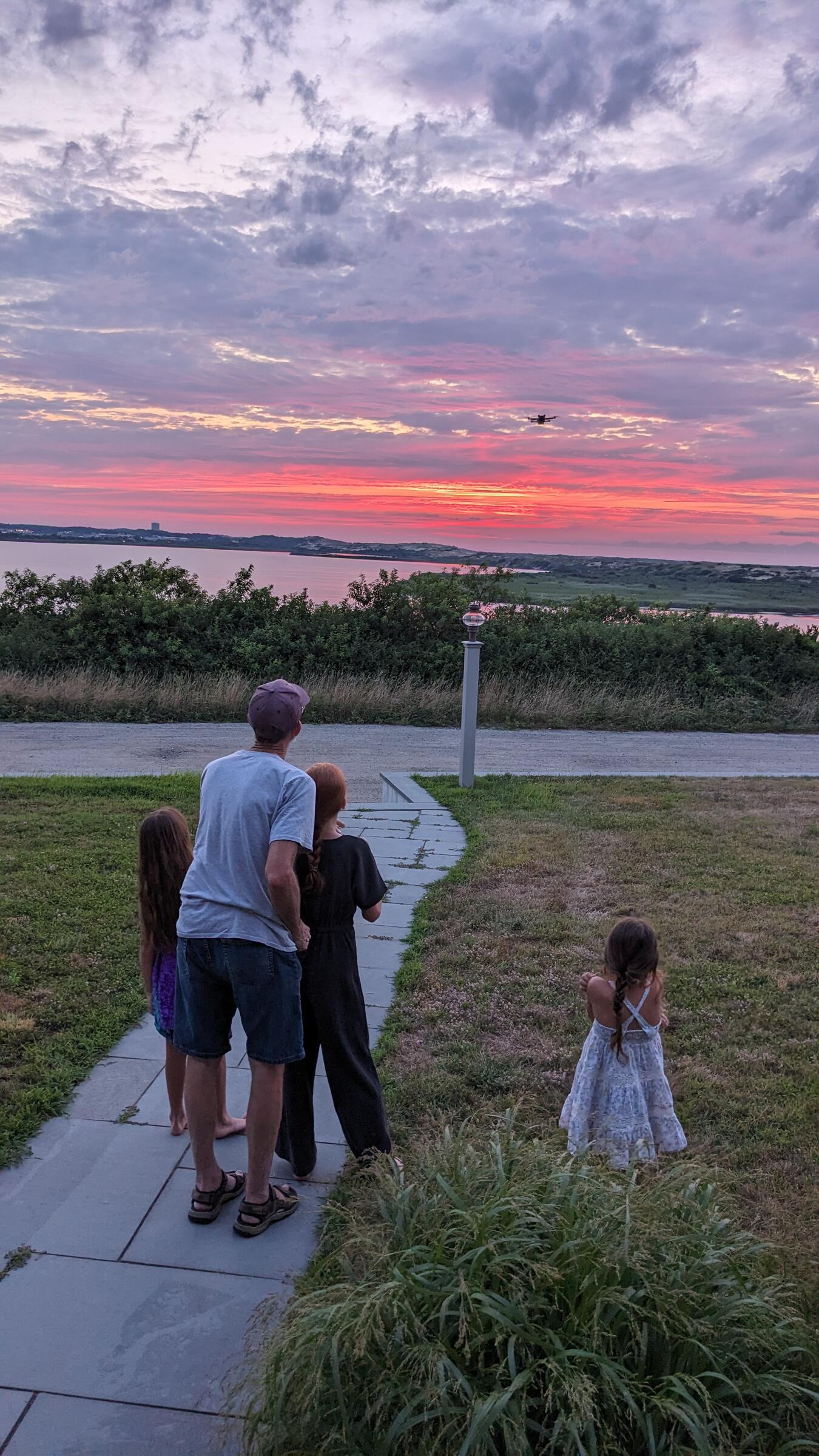 The kids are always up for some drone flying, and you can see the sunset and the drone