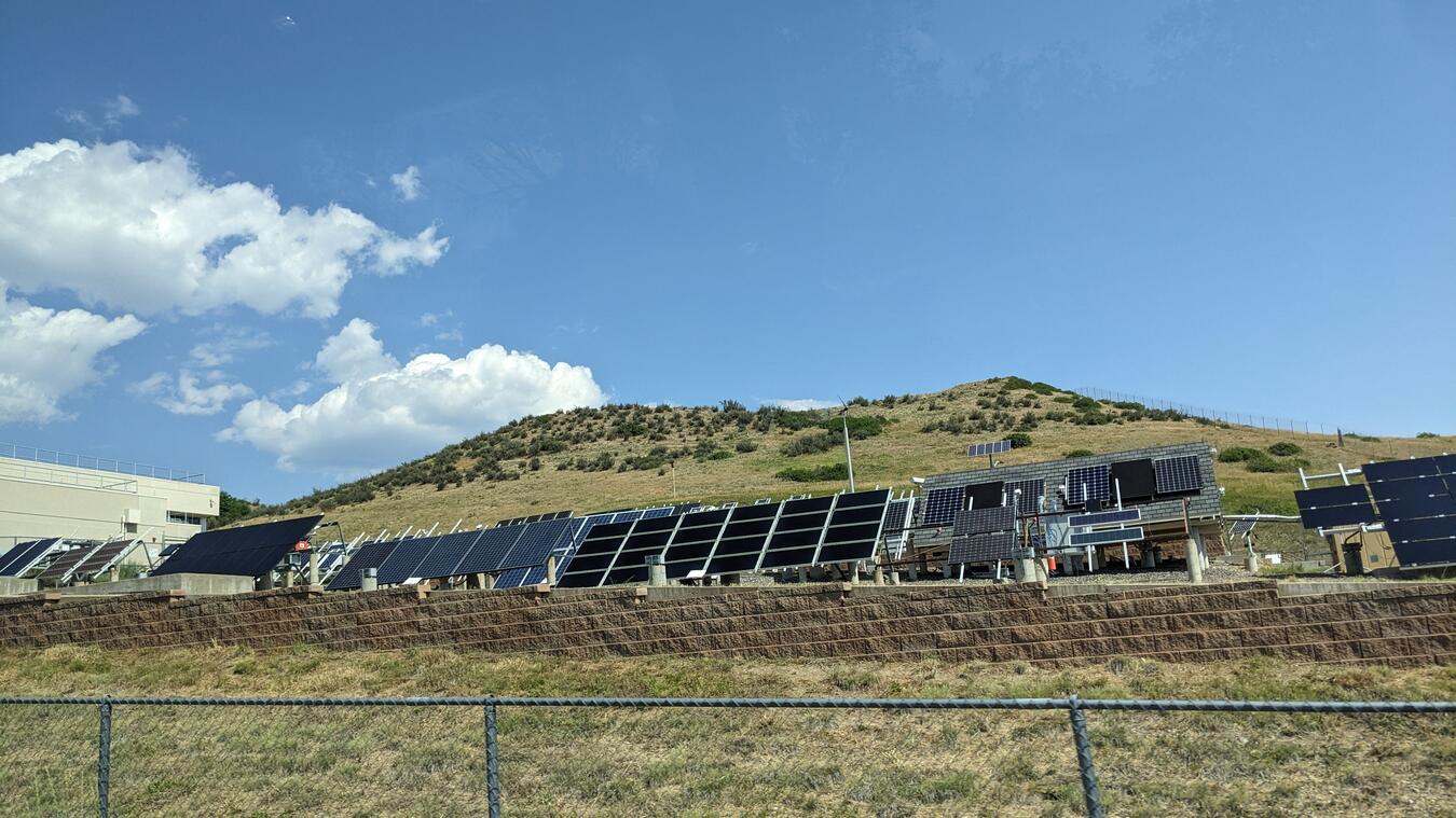 The picture shows a solar panel testing facility at NCAR.