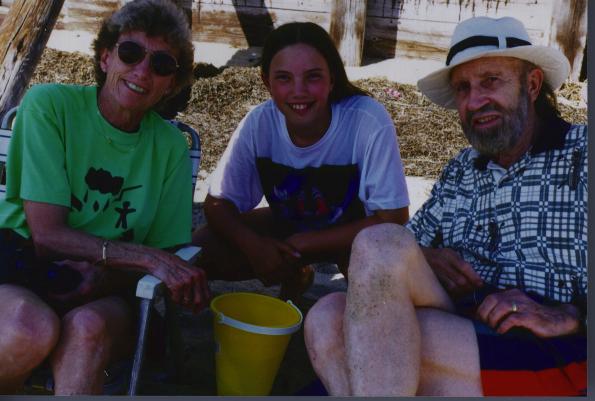 At left is a photo of Kate with Tim's parents on the beach