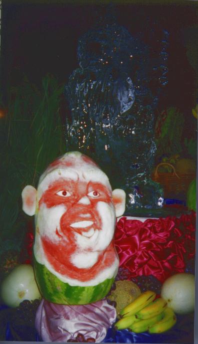 One night the staff carved watermelon and ice (below left)